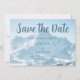 This beautiful mountain Save the Date card features a powerful photograph of snow capped mountains in the winter. Add your event details in blue script over the snowy hills. Perfect photography for a cold weather wedding at a ski resort.