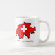 Red map of Switzerland with the white Swiss cross over it. Type underneath says "small ... but beautiful". A very good way to describe the country..a lot of impact for the size.