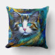 Beautiful Mystical Cat in Blues and Golds Cushion