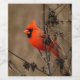 Awesome red bird in the branches of a dead or fall tree with brown leaves. The background makes the bright red of the birds feathers stand out and pop.