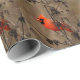 Awesome red bird in the branches of a dead or fall tree with brown leaves. The background makes the bright red of the birds feathers stand out and pop.