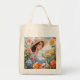 The printing came out very well, better than I had anticipated. The natural color fabric is sturdy with strong seams and comfortable handles. This tote fits easily over my shoulder. As it is filled, the bottom flattens out--very cool! I would buy this product again. This grocery tote holds a lot of groceries! The image quality was very good. The colors were a little darker than I had expected. The darkness may have been due to printing on a natural color fabric rather than on white. The cat design is attractively centered on the tote. The spirit of the design is very lively, just as it appears on the Zazzle website.