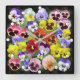 This attractive clock is sure to really give hours of pleasure, we have added dots instead of numbers, as they do not interfere with the floral design so much, but these are easily deleted. This pansy design clock is also available with number's of you prefer.