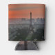 Can cooler with a beautiful panoramic view of Paris, including the Eiffel Tower, at sunset.