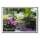 View into a lovely garden. Beautiful pink Dahlias, blue, silver and yellow flowers, palm trees and cypresses. Photo taken at Flor and Fjaere Park, Stavanger region, Norway. Full set of various frames included, feel free to play with new colours and effects! Text can easily be customised or removed.