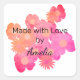 There's no better way to finish your beautiful craft project than with a custom handmade by sticker. Featuring beautiful peach and pink florals this pretty design makes the perfect finishing touch