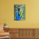 Our photograph of a brightly coloured peacock in full colour looks amazing on canvas, poster prints, or even greeting cards.