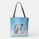 Beautiful Penguin Couple on Light Blue Tote Bag