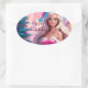 Beautiful Pink Christmas Girl 01 Oval Sticker