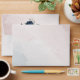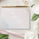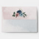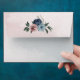 Beautiful pink, dusty blue and navy blue flowers with green leaves botanical envelope.