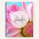 Spiral notebook with a vibrant pink and white flower. Close up photograph of this enchanting flower really grabs your attention. A semi-transparent circle with your name and monogram initial inside.