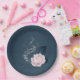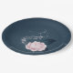beautiful pink flowers & navy leaves botanical wedding paper plates