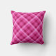 A 16” x 16” throw pillow featuring a cute plaid pattern design in beautiful pink magenta.