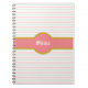 Beautiful pink mint and white striped Notebook. Shine text can be customised.