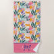 Add a bright pink, orange and green garden pots pattern in the Fauvism painting style to your next beach towel. Brighten your spring break or summer days with this striking towel featuring a flower pots of green design. The elegant personalised name and monogram detail adds a special touch. Perfect for gifting or enhancing your poolside or travel essentials with a unique garden theme!