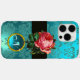 BEAUTIFUL PINK ROSE BLUE TEAL DAMASK GEM MONOGRAM Case-Mate iPhone CASE