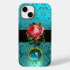 BEAUTIFUL PINK ROSE BLUE TEAL DAMASK GEM MONOGRAM Case-Mate iPhone CASE