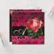 BEAUTIFUL PINK ROSE FUCHSIA BLACK DAMASK MONOGRAM INVITATION