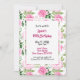 Beautiful Pink Watercolor Roses and bright greenery pattern framing the invitations details. The back of card features the same pattern. Update and personalise the celebration's details to make the birthday gal feel special and loved.