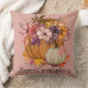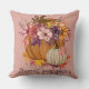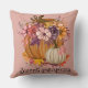 Beautiful Pink Watercolor Pumpkin and Fall Flowers Cushion