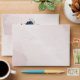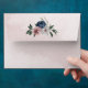 Beautiful romantic pink, white and navy blue flowers with green leaves wedding envelope.