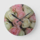 Beautiful Pink White Roses Flower Bouquet Round Clock