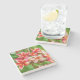 The coasters are gorgeous, a quality feel and heavy weight. They look like a precious archeological find. A rustic stone juxtaposed with a modern floral black and white print. I like the way the print goes slightly imperfect on the cut stone edges giving them a kind-of natural beauty.