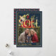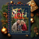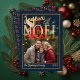 Simple real foil elegant family photo "Joyeux Noël" (Merry Christmas) poinsettia floral design with single rectangular photo Christmas holiday design. Back features a poinsettia repeat pattern. All gold areas are faux (digitally created gold gradient) with the exception of the name and year templates. Those are flat gold-tone single coloured print. This design is available in both print and/or digital download, but is also available in a real gold foil print version via separate purchase in our shop.