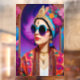 An image of a beautiful lady with sunglasses. This is an image created by AI with floral theme design.