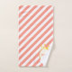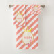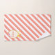 Fashion towel set with beautiful Queen's crown and pink flowers design with diagonal coral and white stripes on the background. Text MOM can be customised.