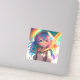 Beautiful Anime girl with rainbow background, Colours used are pink, teal, orange, blue, purple and blue. Cute and colourful children's Ai art. generatviecontent