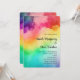 A wedding invitation with a watercolor background featuring colours of the rainbow.