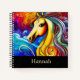 Beautiful Palomino horse with colourful mane on a swirly rainbow background. A personalised digital art bullet journal made with AI rendering software.