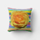 Beautiful yellow rose on rainbow stripes background throw pillow