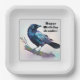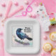 Paper plates with a lovely watercolor drawing of a crow. Dark blue and vibrant purple colours accentuate the beauty of this bird.