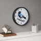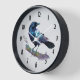 A clock with a lovely watercolor drawing of a crow. Dark blue and vibrant purple colours accentuate the beauty of this bird.