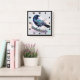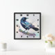A clock with a lovely watercolor drawing of a crow. Dark blue and vibrant purple colours accentuate the beauty of this bird.