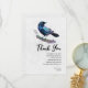 Flat thank you card with a lovely watercolor drawing of a crow. Dark blue and vibrant purple colours accentuate the beauty of this bird.