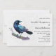 Wedding invitation with a lovely watercolor drawing of a crow. Dark blue and vibrant purple colours accentuate the beauty of this bird.