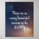 "THERE ARE SO MANY BEAUTIFUL REASONS TO BE HAPPY" quote poster with a night sky background.