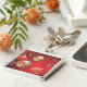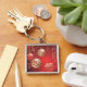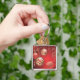 Beautiful keychain featuring red and golden Christmas balls, red and golden ribbons and red and golden bead strings on a red background. Perfect gift for your friends and family members.