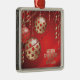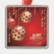 Beautiful Christmas premium square ornament featuring red and golden Christmas balls, red and golden ribbons and red and golden bead strings on a red background. This a perfect gift for your Christian friends and family members.