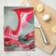 Beautiful Red ash grey geometric motif ART design Tea Towel