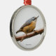 Beautiful Red-Breasted Nuthatch Songbird on Branch Metal Ornament