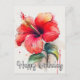 This lively birthday postcard features a beautiful depiction of a red tropical hibiscus flower. It is an ideal choice for mothers, daughters, grandmothers, friends, family, and colleagues. #Colourful #Retro #Vintage #Girlfriend #Wife #Mother #Girly #Pretty