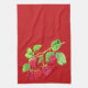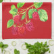 Beautiful Red Raspberries On Stems Green Leaves Tea Towel