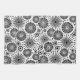 Elegant black and white retro pattern with circles, flowers.