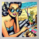 Beautiful Retro Lady at the Beach with Cocktail Poster