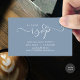 Introducing our Modern Elegance beautiful romantic Wedding RSVP Card (dusty blue)– the perfect blend of sophistication and simplicity. Designed for the contemporary couple, this RSVP card features clean, minimalist script, and a subtle touch of luxury to confirm their guests' attendance. The sleek design complements the dusty rose pink wedding theme, adding a touch of class to your stationery suite. Ensure your special day is meticulously planned with our elegantly modern RSVP card – a timeless keepsake for you and your guests. Designed by TeeshaDerrick