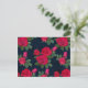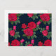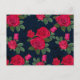 A vibrant floral pattern featuring red and pink roses against a dark navy background!